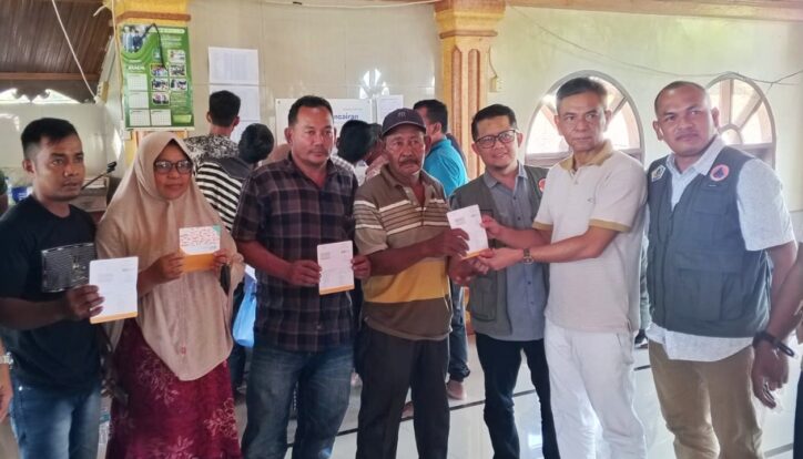 Plt Kalaksa BPBD Aceh Utara, Fauzan, S.Sos., M.A.P. menyerahkan bantuan dana rehab rumah secara simbolis kepada kepada warga di Kecamatan Sawang